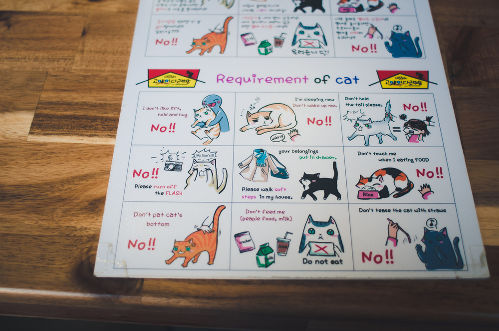 Après avoir passé quelques minutes à boire nos boissons et à regarder le chien faire des vas et viens entre la salle principale et celle des ratons laveurs. Nous nous levons et nous nous adressons à un employé du café en lui demandant si nous pouvons passer dans l’autre pièce, dédié aux batmans animaliers.