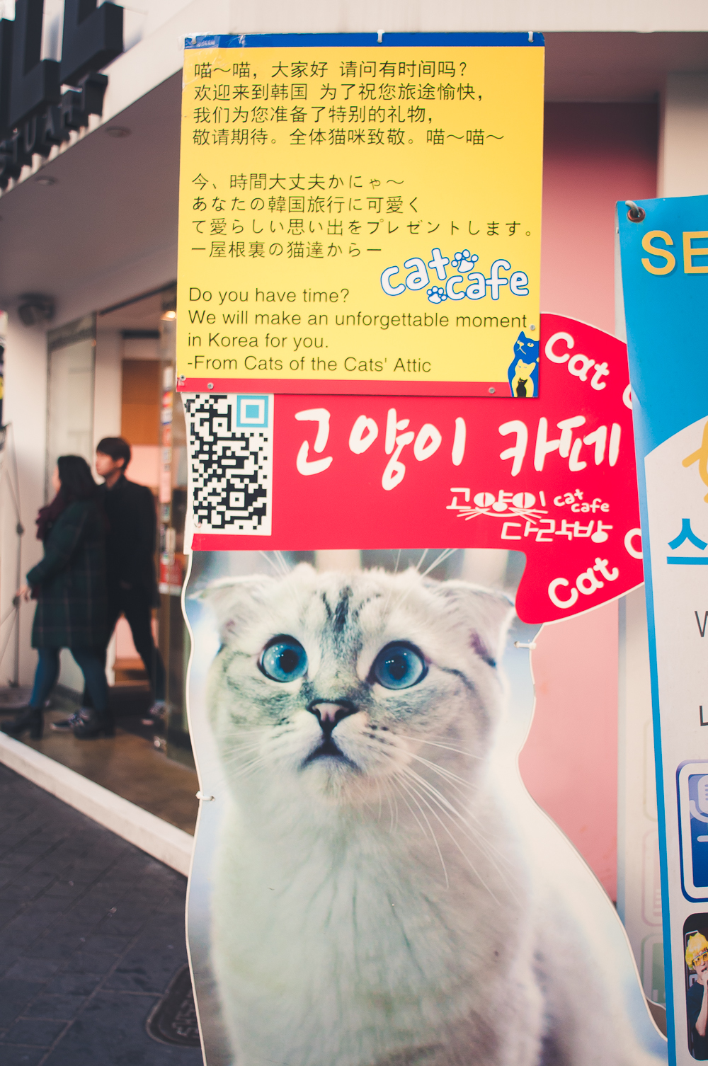Après avoir subi un gros décalage par apport aux horaires, nous avons prit la décision un soir d’aller voir le « Blind Alley ». J’avais avec moi un plan pour être sûr de ne pas se perdre entre les rues et quelques photos de la devanture pour nous repérer. Après quelques minutes à marcher le long d’une grande rue commerçante, en tournant la tête nous tombons sur ceci.